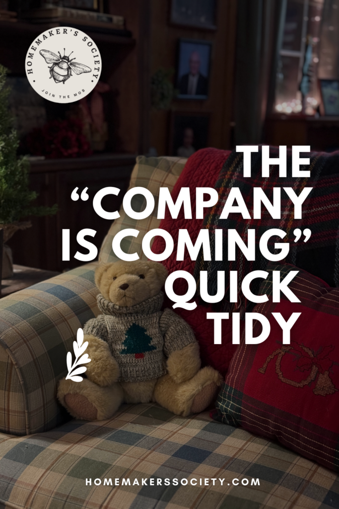 That’s what this “Company is Coming” quick tidy is for. A simple, repeatable reset you can do in a short pocket of time to make your main spaces feel lighter, more peaceful, and easier to function in… even if the only “company” today is you and your family.