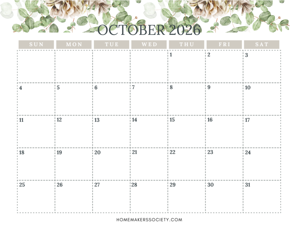 Free Printable 2026 Calendar for Homemakers Who Want a Fresh Start